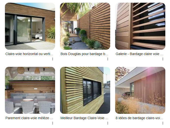 - Bardage claire voie sur Sud Bois / 18 euros le m2 TTC.