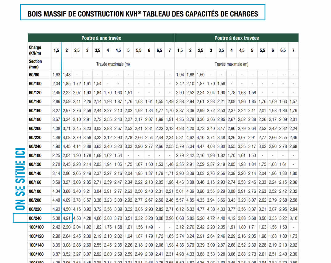 - 80 x 240 de section reportée par la nomenclature sur du KVH ou du STEICO.