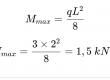 Charge maximum autorisée : 178 kg / m² soit 1.78 kN auquel nous devrons ajouter le poids du bois, tablons sur 2.1 KN / m² et nous réajusterons. Enfin, nous devons appliquer un coefficient de sécurité que nous allons simplifier à 1.35 soit une charge maximum de 2.83 KN / m².
