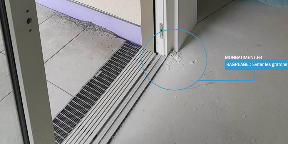 Le carreleur ou le solier va donc devoir « buriner » ces reliquats, et la présence d’une menuiserie aluminium a proximité va générer un gros risque d’accident ! Je vous laisse imaginer un coup de burin mal placé. Crédit photo : S.USTUN.