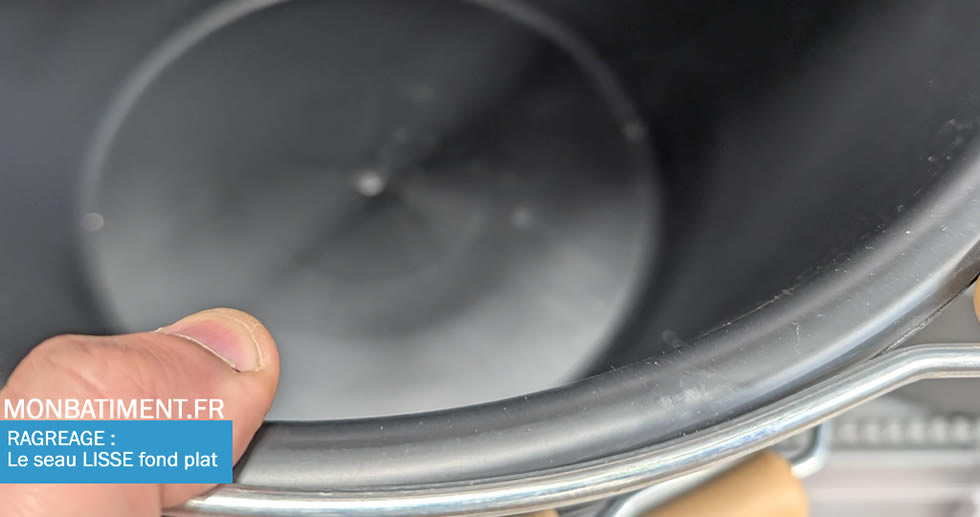 Pour réaliser le mélange, il vous faut impérativement un grand seau (30 litres minimum), dont le fond et les parois sont LISSES. Dans le cas contraire, au bout de quelques gâchages, le mortier va s’agglomérer dans les éventuelles stries ou le fond du seau.