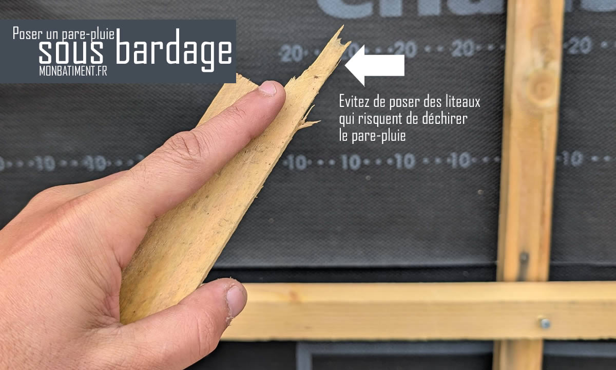 Veillez à ébavurer vos liteaux, afin d’éviter les échardes. Ces dernières peuvent facilement déchirer le pare-pluie.