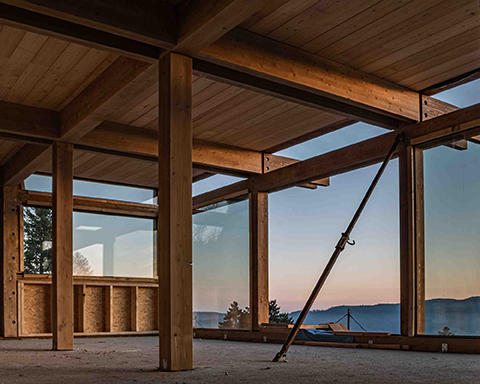 Bâtiment entièrement en poteau-poutre bois, avec un accent sur la durabilité.