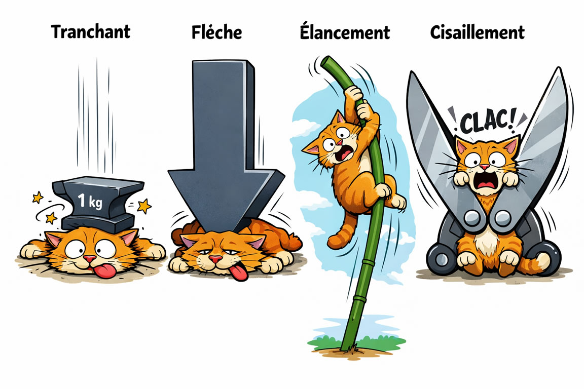 Exemple : rupture d’une poutre sous surcharge.