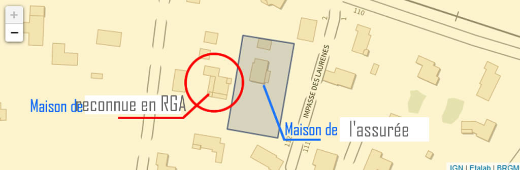 Il devrait, par conséquent, ne subsister aucun doute sur l’origine du sinistre, sans nécessité d’en apporter la preuve. Malheureusement, l’expert de compagnie refuse la prise en charge. Certes, sur la carte de risque la zone est située en risque faible. Cependant, elle est limitrophe à une zone qui elle est en risque important de RGA. Peut-on sérieusement baser son raisonnement sur une limite géographique de quelques centaines de mètres seulement ?