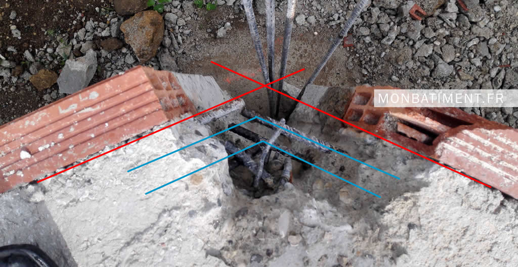 Dans ce cas précis, le diamètre des fers à béton et leur nature (modèle) sont parfaitement règlementaires. Après poinçonnement au scléromètre, il s’avère que le dosage du béton est respecté.