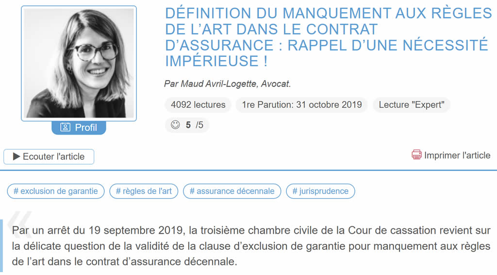 Vous l’aurez compris, cet article n’a pas vocation à juger ou à établir une quelconque culpabilité, mais a réaffirmer que le respect des règles de l’art doit être un impératif dans nos métiers.