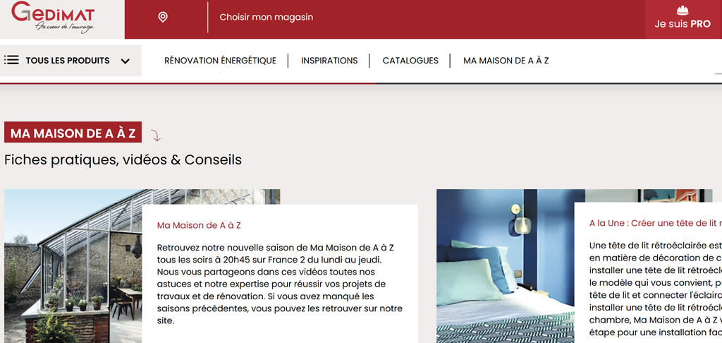 - Gedimat : Toujours à la traine sur les applis, et trop axé « particuliers » Gedimat ne sort pas du lot en terme d’offre numérique.