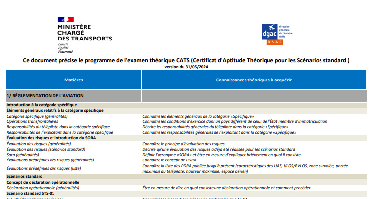 - Détenir les certificats nécessaires pour piloter en catégorie “Ouverte” ou “Spécifique” : Le CATS.