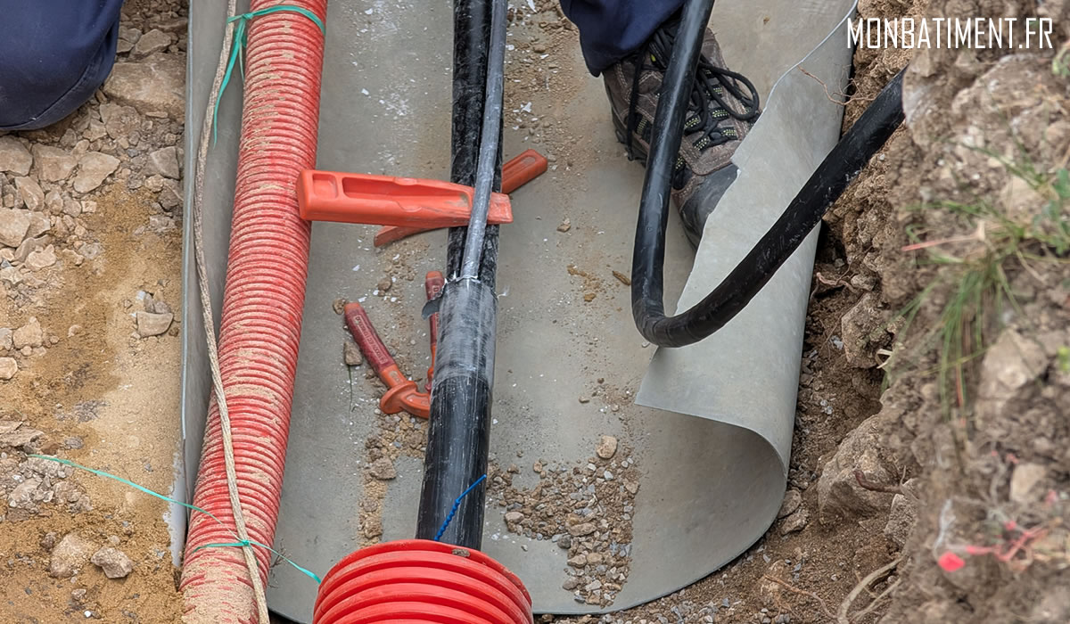La gaine IK10 nous aura coûté 275 euros pour 25 ml, dont la moitié passera en perte. Le grillage avertisseur nous aura coûté environ 30 euros. Tout le reste est intégralement pris en charge par Enedis. Bilan : 1835 euros TTC pour l’opération de raccordement (VRD) sans aucun souci sur un chantier atypique et complexe au demeurant.