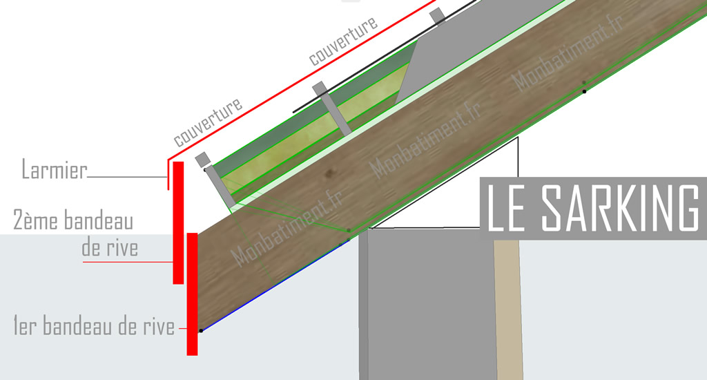 Ci-dessus : Le point singulier qui concerne la surépaisseur qu’engendre le sarking. Cette dernière est particulièrement difficile à gérer sur la lecture visuelle de la couverture au droit des rives. Infographie : S.USTUN.