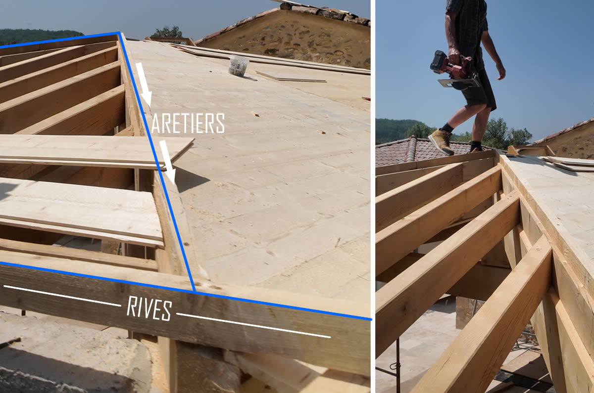 Une toiture 3 ou 4 pans va générer un élément structurel singulier que les charpentiers nomment : L’arêtier.