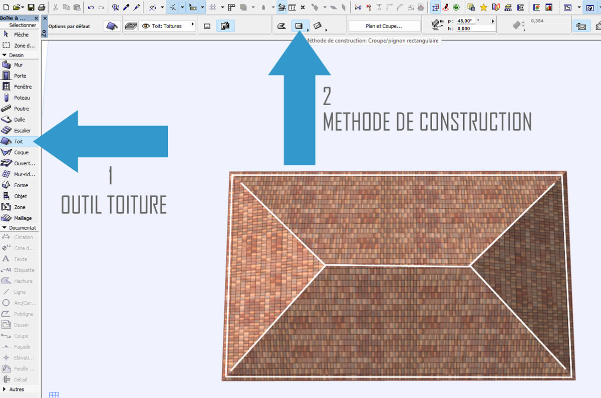 Pour mieux illustrer mon propos, je vous invite à comparer les deux « formes » de toitures sur la vue en plan dans le paragraphe précédent.